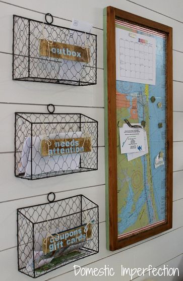 1) Mail sorter. Try hanging a row of baskets near your entryway. As you are walking into your home while sorting the mail slip the appropriate piece of mail into the corresponding basket. Have one basket for each family member and drop the junk mail into the wastebasket you’ve placed just below the row of baskets on your wall. This way everyone has easy access to his or her mail and junk mail is handled as well.