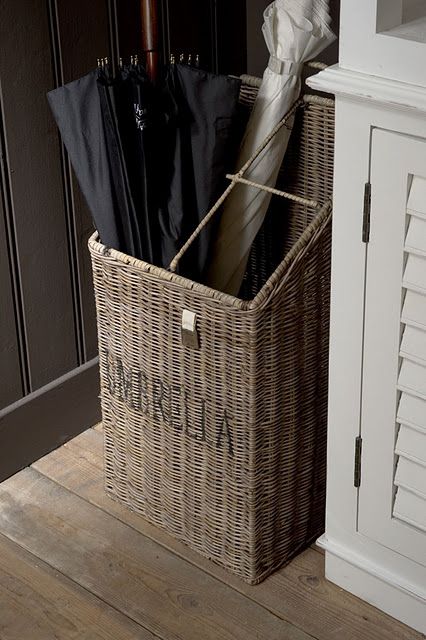 4) Umbrella holder. This is an excellent use for a basket if you have one of the proper size. Place it on the floor next to your coat rack or closet or in your entryway and you will always have ready access to your umbrellas when bad weather comes your way.